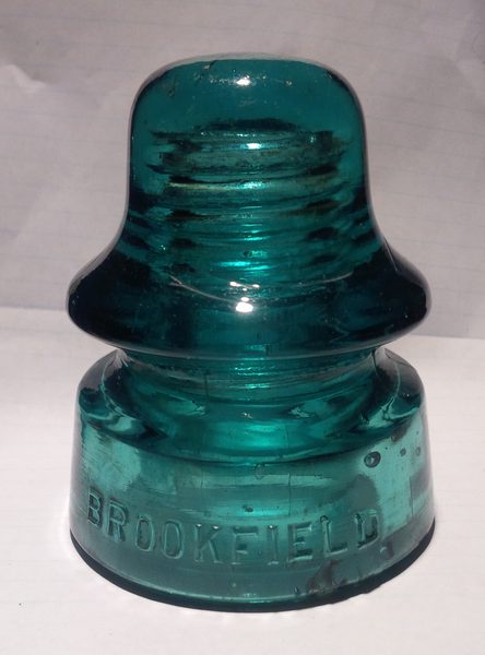 I have available an oddity BROOKFIELD product. Called a Top hat. A really definitive smaller dome than its counterparts of the same CD. This comes in a greenish aqua colour. There is no damage to this insulator. There is an open base bubble below L that is minimal. See next picture for close up. I'm asking US Now $10. Plus shipping. PayPal cheque or MO. Thanks. Graham. |