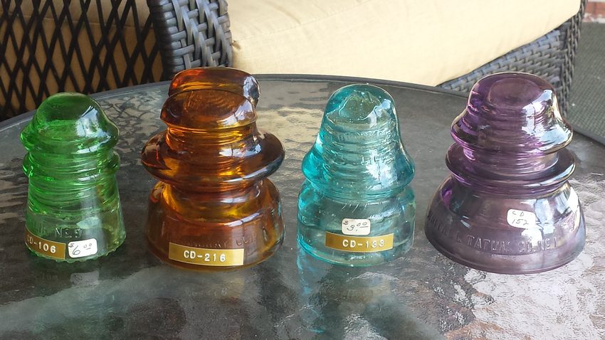 sitting in church office doing financial statement. in comes one of the older widow ladies. Tells me she was cleaning out her garage yesterday and came across box of insulators. same lady several yrs back that talked to me and gave me Milholland books after insulator themed missions conference. they are in the car, would i like to see them. She had index card with the 7 CD nmbrs written on it, price, and her sale price. I knew from card then that we were not talking hemi 40's and 42's. Sure enough, nice variety of old sales stock from her husband. Paid her asking price and took them home Even had to borrow $5 from my wife to get the total needed. |