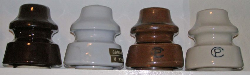 Here are four different U-2239 signals from Canada as follows -- all in good condition -- $10 for all four plus actual postage. Unmarked dark brown glaze -- possible German import Awesome drippy blue glaze, unmarked CP (Canadian Porcelain) logo in white CP (Canadian Porcelain) logo in a great mottled brown glaze |