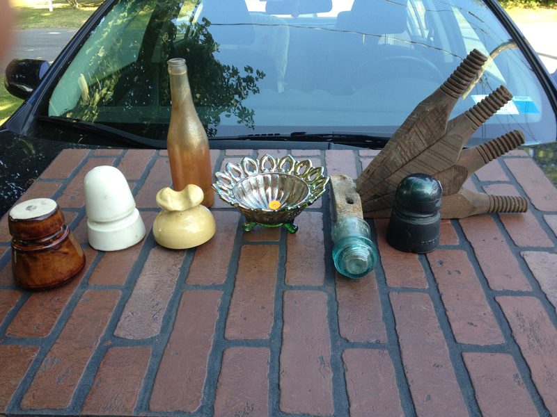 There is more to write home then would meet the eye here. See them often but never purchased a Canada Dry soda bottle before. Don't usually buy other carnival glass items normally but couldn't pass up the green three footed Northwood bowl. Had one like it before and it sold on eBay. So it's likely what is going to happen to this piece unless I trade.for insulators like I've also done in the past. And speaking of insulators not much out there today at the flea markets and antique shops I visited today. If you assume I collect porcellian insulators now you would be right. I do have a white beehive packed away someplace but I'm not sure if it is the same one. I also have a haystack stored away. However I think it is fully glazed unlike the one in my pic. And yet another first for me today would be the yellow NN cable top. Of course I couldn't have purchased them in the past being they weren't out there for me to find. Had run out of wooden side pins to hang some new CD numbers on my outside display. Was very happy to find five today. Four of which I din't believe were ever used even if they are a bit dirty. For awhile today I was thinking the insulator on one of the five pins was going to be the only glass I would be returning home with. It came with the pin otherwise It would have been left with its seller. But regardless of that I did end up finding the CD 147 spiral groove in an antique store I visit a couple times a year. It also would have stayed on the shelf where I found it if it didn't have a hairlip. Other then that it looks pretty plane under the soot. Will see for sure when it is done bathing. Thanks for looking. Hope my story hasn't bored you to much!! The Creb Crow PS: it was a real tough decision passing up a Beehive Creb beehive off of the same seller I pucked up the 147 from. It was a letter B on rear crown with a surface flake that removed part of the B. |