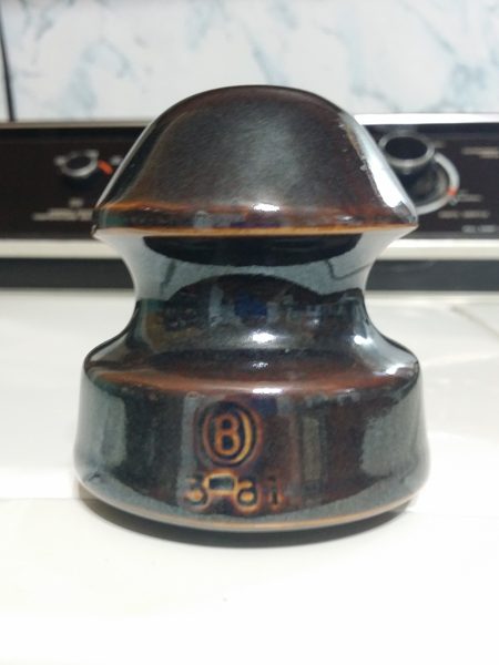 Here is a curious OB signal I strongly believe was glazed with ashes from the eruption of Mt. Saint Helens. This piece sports the odd looking purple/ brown glaze as seen in verified pieces. The OB Company made a limited run of 200 pieces and other pieces I've seen have factory stickers and notes in the pinhole. I cannot prove this is one of the 200 but the date code [3-81] and odd glaze make me think it is. Unlike most production pieces, the pinhole on this is entirely unglazed. I am asking $35 plus shipping. |