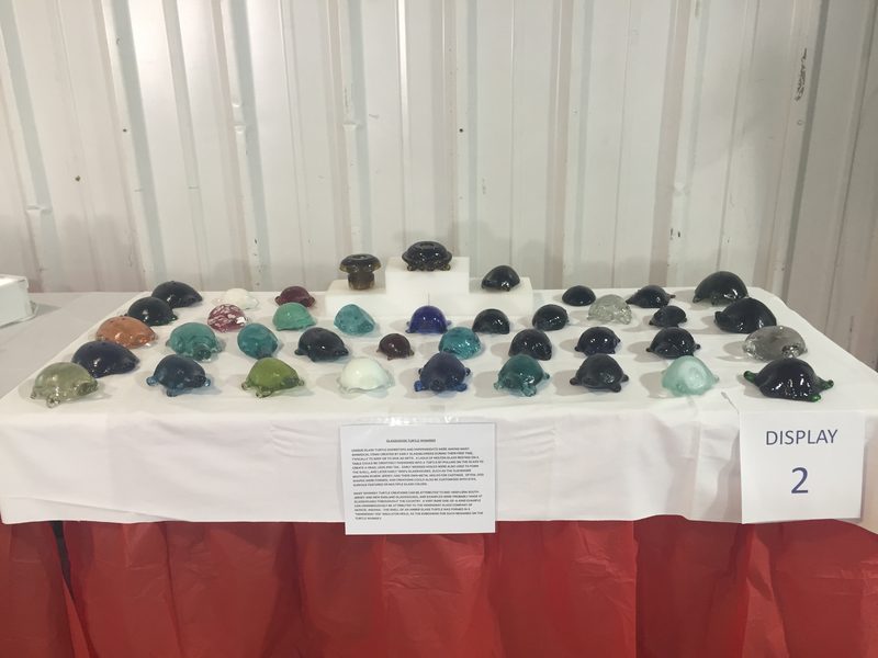 This display is called "Glasshouse Turtle Whimsies". A very nice collection of pieces made by those at the glasshouses. While there are some attributed to Insulator Manufacture's non is more obvious than the center piece of this display (see next photo) |