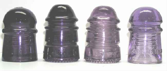 Left to right: CD 102 no name #2 on dome royal purple, CD 113 no name "Braille" royal purple, CD 113 no name "Braille" milky lavender, CD 102 NW&BIT CO purple.