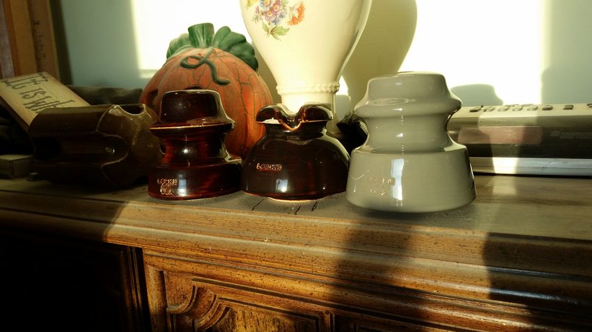 I also went to an auction and two flea markets this past week and found stuff that is more normal for me to find. Sorry for the weird angle of the photo, I was trying to get sunlight to show the nice coloring on the 44C. Great mottled dark and red-brown glaze on the 44C...very attractive. The cable top is dark brown with a few lighter streaks, and the 44 is a solid gray. |