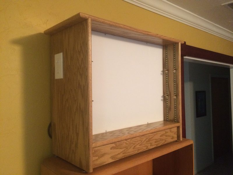 Here we have a top of the line display case. Best bulbs, best diffuser, best ballast, best shelves. 3 - 5000K Daylight Bulbs with 86 Color Rendering Index and 20,000 hour life rating. 1/4 inch thick sign grade milky white plexiglass diffuser that will not yellow over the years. One - three bulb electronic ballast that will run quietly and cooler than the older magnetic ballast. 2 - 3/8 inch thick Starphire (almost Crystal Clear) glass shelves four inches by 24 inches. Extra shelves are available at $20 apiece. (that's my cost) Made with 3/4 inch cabinet grade oak plywood and trimmed out with solid oak. Four vent holes on the back to keep air moving. The bulbs and ballast run very cool, but a lighting engineer at Philips lighting told me the cooler you keep things the longer they will last. Stain color is either Red Oak or Oak Mantle. NOT the color shown! Smooth back with rounded edges for easy sliding into and out of vehicles. A single light switch is on the side with a power outlet right below the switch for easy power access. Dimensions are 28.25" widest point, 23" tall, and 12.75" deep. You can get 33 ponies, or 30 tolls, or 24 beehives/signals in the case. My price is $400, which is basically the material and a little for my labor. I will deliver this to the national show in Muncie in July, or the Springfield, OH show in Nov. Otherwise, we will have to figure something else out. I will not ship this as I have way to much blood sweat and tears invested to have it demolished by a shipper. I only have a few sale cases left and will NOT be making anymore for quite some time. Get this while it's available. Thank you for looking, Brian |