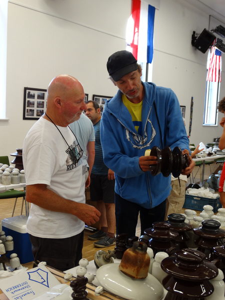 Austrian collector Robert Lukas talks about an insulator with British collector Derek Milward.
