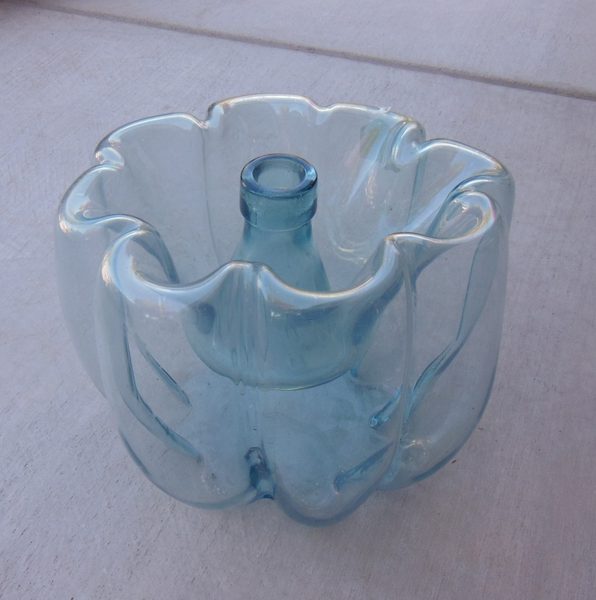 Found by my daughter at an outdoor antique faire over the 4th of July weekend. This is a Mclaughlin whimsy fashioned from a 5-gallon water bottle. This one resembles a large green pepper. Trained at a very young age to look for stuff for Dad, my youngest daughter is an adult now but she still recognizes the insulators and go-withs that Dad likes. |