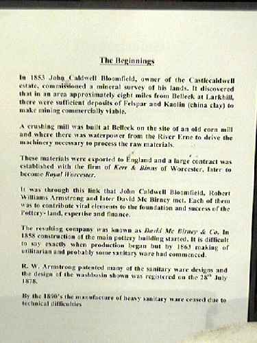 A photograph of a page of text describing the founding of the Belleek Pottery.