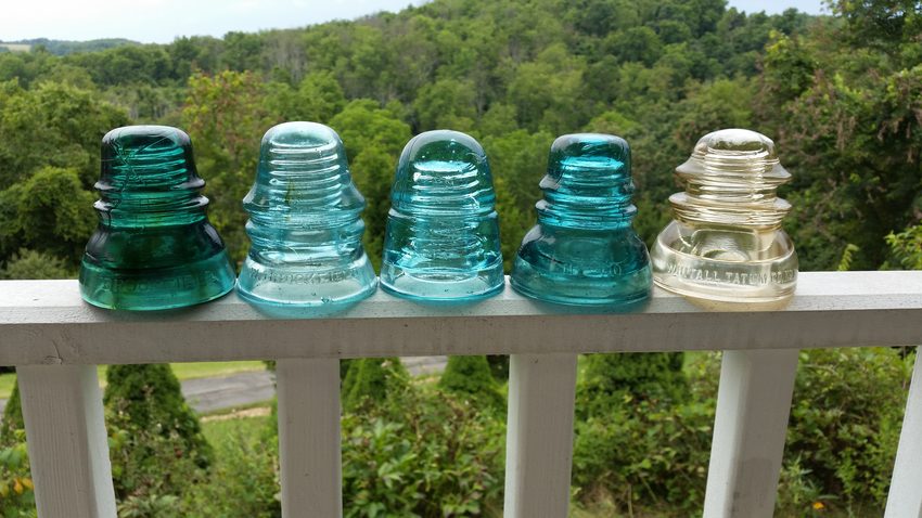 More from my neighbor's garage [id=473981024]. This group contains a Brookfield 152 [055] dark green aqua with a big blob of amber in the front and wisps throughout (there is some dirt I wasn't able to get out near the amber blob), a light blue Brookfield 151 [030] with a little amber streak in the front dome, a light blue B 145 [035] very clear glass with some bubbles and what looks like a hand drawn 2 on the back, a blue aqua No. 40 152 [020] full of small rocks and bubbles and a small amber streak in the dome, dark straw Whitall Tatum 154 [050]. |