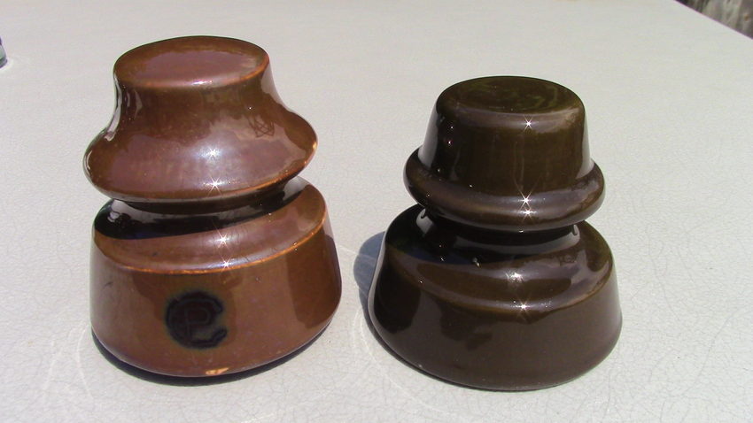 On my vacation, I bought ten insulators from plenty of antique shops beginning with the first two. Light brown Canadian Porcelain signal and a greenish-brown signal.
