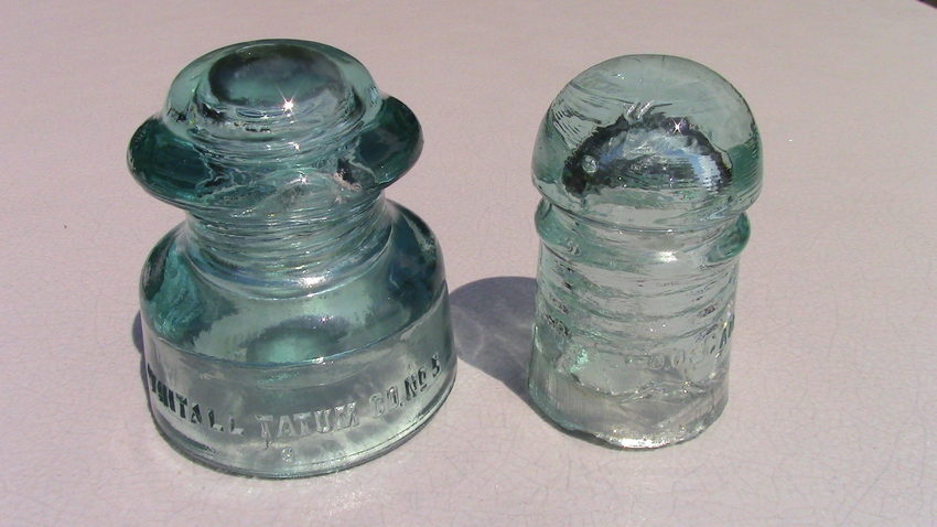 Whitall Tatum Co. insulator and B. T. Co. of Can. insulator. The insulator on right is also marked with two diamonds on both sides.