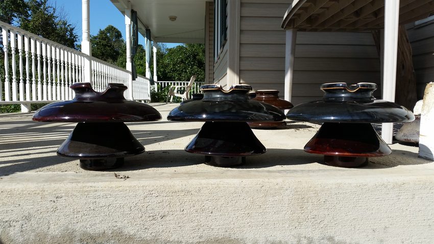 Got a call from my ad on Thursday. The woman said she had 6 "3-tier" porcelain pieces from Maine.... I was hoping for older 3 part multiparts but they ended up being fairly common 2-part pieces. It is tough to convince people that pieces this big aren't worth a lot of money. Decided to buy them anyway and try to find them homes where they will be appreciated. Not sure of the U-numbers on these. I think maybe M-2751 for the one on the left, but the 2 on the right have more of a profile of an M-2661 but they have an extra groove under the top skirt and I don't think the 2661 does. Glazes on these three are very attractive mottled glazes. The one on the left is a mottled mahogany top with a black/gray bottom. The 2 on the right have black tops, with the one on the far right being matched with a warm brown bottom. These two are very interesting looking pieces. The other three she had are Locke and O-B [id=476311244]. |