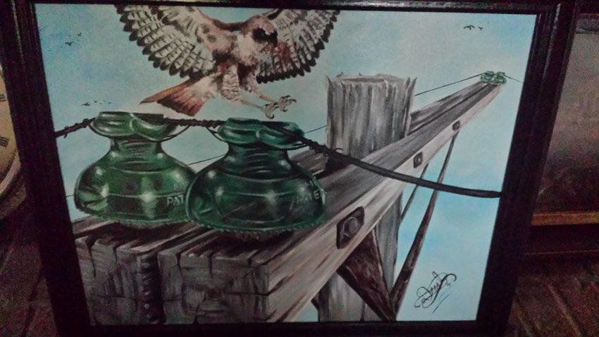 shown painting is similar to picture of them in use in Ohio. Red tailed hawk is bird.