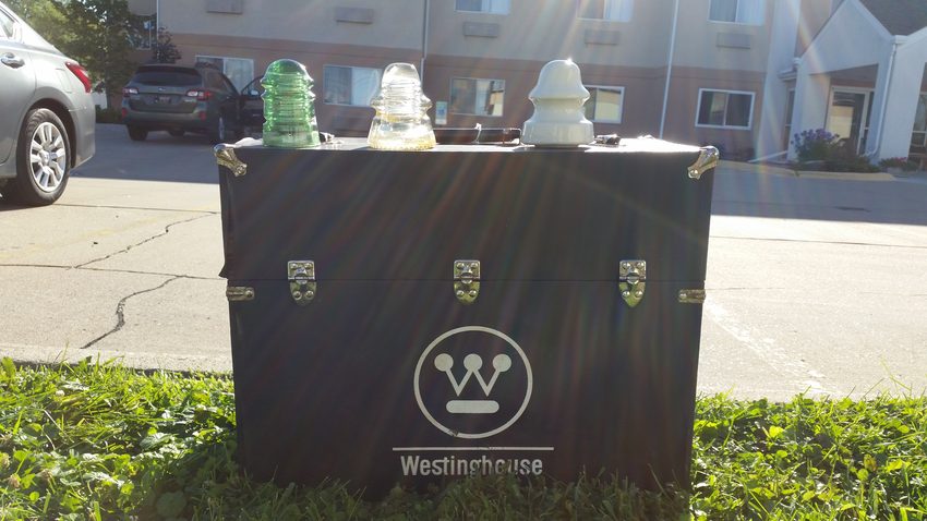 Yesterday on the first day of our great adventure driving to Bob Scafe's event in Merritt BC, we stopped for a break at an Ohio antique mall (I love Ohio antique malls!). We came away with a beautiful yellow green Star keg, a Hemingray baby signal with a blot out on the back, a white Westinghouse signal, and this cool Westinghouse sample case or tool case. Hoping for more neat finds along the way. |