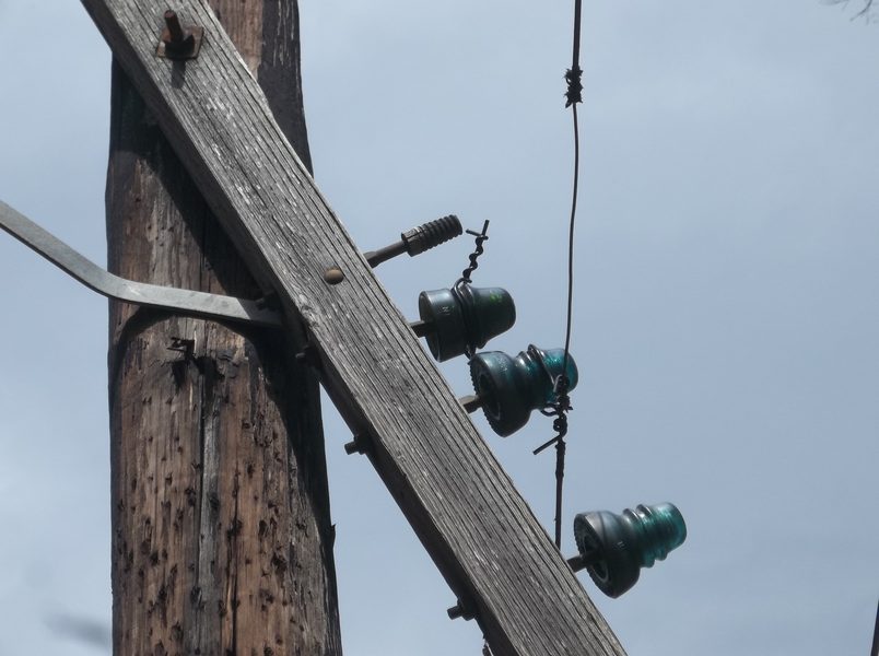 These were loaded with amber. The line had been recently taken out of service and the crossarm was left hanging until all the poles were removed the following year.