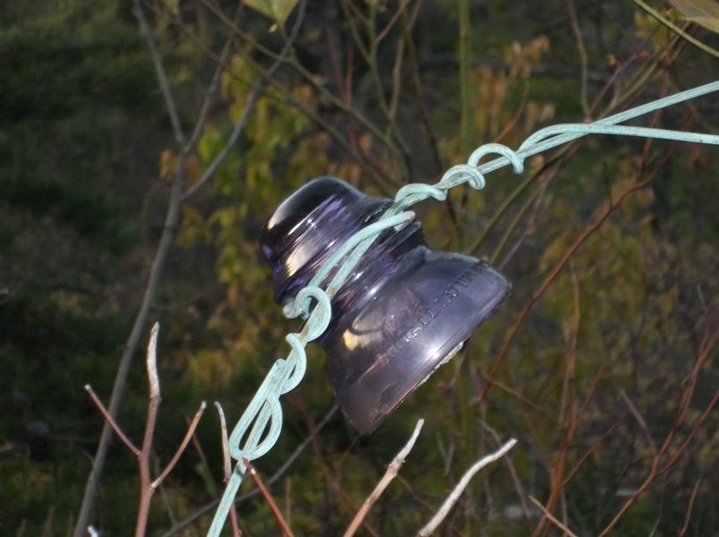Hanging off the pole.