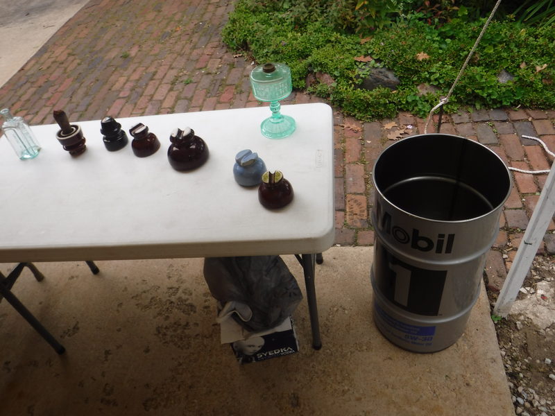 Another picture of some nice insulators for sale. There was an oil drum there too, perfect for that man cave garage.