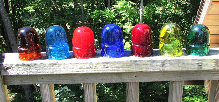 Full set of the desirable MAYNE ISLAND COMMEMORATIVES created by Mark Lauchner In the CD 143 shape. The set includes the six original colors plus the extra color (I don't remember which one of the seven that is). Each is embossed "MAYNE ISLAND INSULATOR MUSEUM" on the front, both above and below the wire groove and base embossed "BC.CANADA.2007. Mark Lauchner (in script)" A GREAT CHRSTMAS GIFT!!! They are all in MINT condition. If you are interested, I have individual photos of each piece and I'll be glad to send them to you on request. I am asking $175 for the set plus shipping in a USPS Large Flat Rate Box that runs around $18. PayPal "Friends and Family-no fee" preferred, but checks or M.O.s also OK PLEASE NOTE: I also have a full set of the BOXBOROUGH NATIONAL COMMEMORATIVES shaped like the screw top CD 158.9 insulators for sale. I just saw that John Rajpolt has listed a set of these, so I don't want to compete with him. I wlll list them at a later time. |