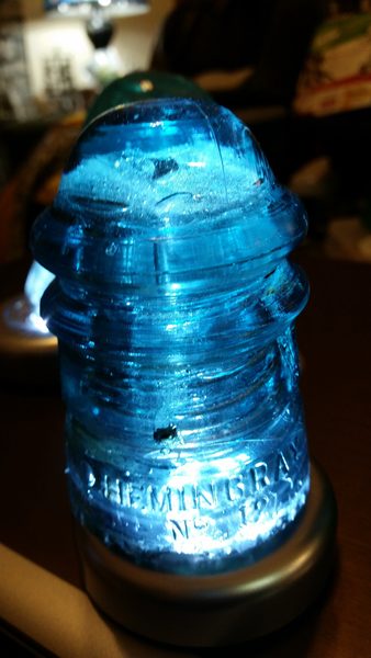Here is a close up of the dome, where hopefully the roiling tiny bubbles can be seen more clearly, along with three larger bubbles. The bottom of this insulator is rather chewed up, but the top makes up for it. First picture here [id=485820631].