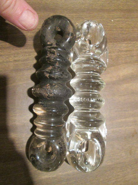 2 different pyrex radio strains, about 5-1/2" long. One needs cleaning. $15 for both, plus post from the pacific coast of Canada. So, $12 to Canada, $18 to USA. PayPal preferred.
