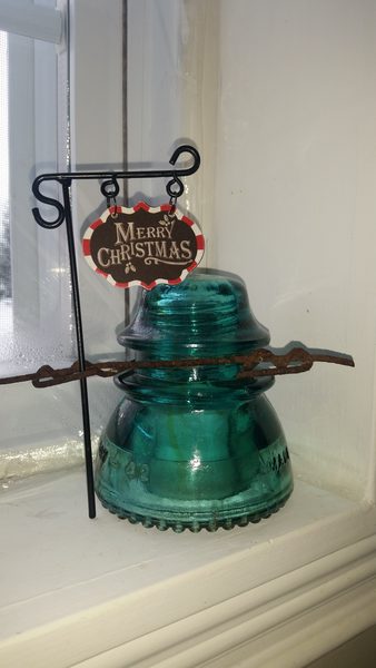 This Hemingray-42 has a funny story. Many moons ago this piece was in my possession. I really can't recall where I picked it up but it had the original tie wire and was actually covered in soot. Nothing special in my eyes for these were used everywhere. I tried selling it in my mom's garage sale for a quarter but no takers. So it stayed with me until now. Just this month I had seen it on a shelf in my pole barn and decided to bring it in and clean the soot off and shine it up. When I did I got a little surprise that you don't see everyday. A nice visible band of amber running all the way to the dome. Now I'm glad I had kept this one all these years. I guess I will list this one as found again.... Merry Christmas everyone. |