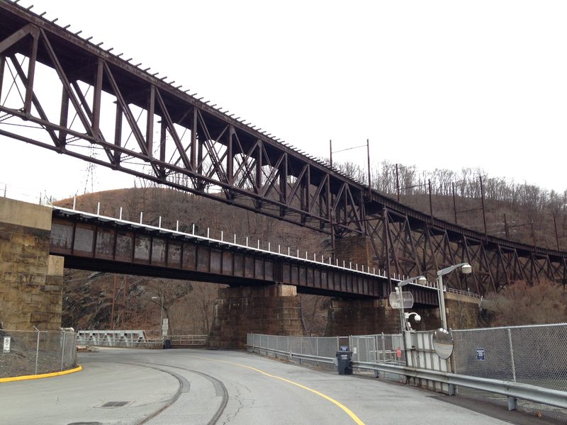 Wanted to end 2016 the same as 2012 by going insulator hunting, so I revisited the Safe Harbor trestle. Here it is as viewed from the parking lot of the adjacent dam. The upper trestle was built in 1906 for the PRR's Atglen Susquehanna branch and is currently abandoned. The lower bridge is for the Port Deposit branch and is still in use by NS. There are plans to referbish the old trestle and include it in the rail trail. |