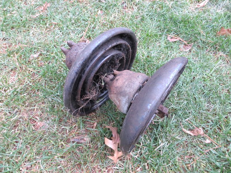 Here is a picture of the insulators before I cleaned them up. They are more Westinghouse catenary suspensions from 1937.