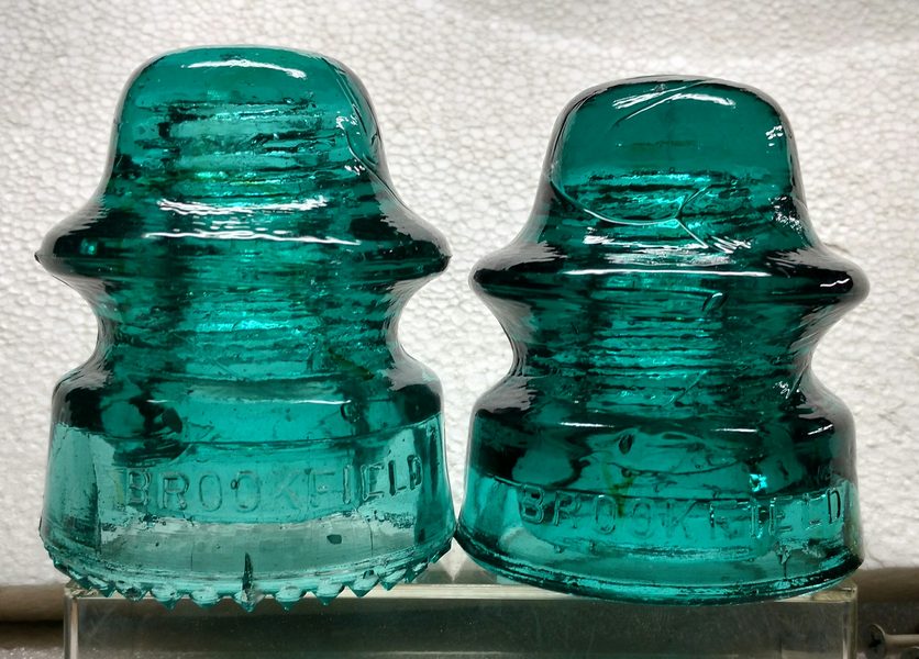 First finds for the new year . Two BROOKFIELD 164s, left has drips and right has #5 on dome, both have amber streaks about and some debris !!!