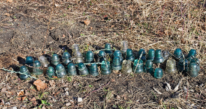 With all the snow gone from the record warmth it was time to hit my favorite line to hunt insulators along the old mainline Pennsylvania Railroad. My friend and I found about 65 total for the day. In this shot are 34 common insulators with the best being a CD 145 Petticoat beehive that was partially buried in the ground. 12-31-2016 |