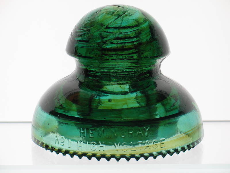 CD 281 [050] (F-Skirt) HEMINGRAY/No 1 HIGH VOLTAGE (R-Skirt) PATENTED MAY 2 1893 SDP. Spectacular spiral barber shop pole olive amber swirls from the drip points all the way into the dome. Great color band separation. Displays great from either side. Only 2 of the many drip points are partially shaved / chipped. It's relatively easy to find a CD 257 Mickey Mouse with lots of swirls. How often does a Hemingray High Voltage piece show up where it almost looks like the Old Bridge Brookfield plant had a hand in the making? I will post a picture of each side. Price $250 firm unless you have something tempting of comparable character that will fit into my collection for trade. I'll cover the shipping within the US. PayPal no fee method and well as checks welcomed. First email as always! |