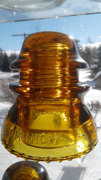 For sale a CD 154 Dominion [020] in dark honey amber. Has a 5/8 inch flake on the bottom side of the upper wire groove above the D in DOMINION and a flee bite below the O between / just above two drip points. Drip points are in prefect condition, straw marks on the front dome and numerous bubbles throughout the glass. Asking $80 USD + actual shipping. PayPal family and friends option. More pics available upon request. |