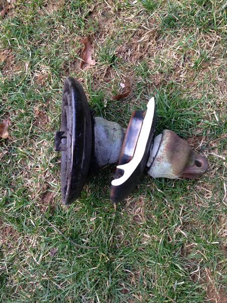 Went insulator hunting last Sunday before the Superbowl at two places and found nothing, so I again visited the trestle at Safe Harbor I have hunted previously and came back with these suspensions. It's a shame the one is busted because it has a pretty Westinghouse glaze. The other one is mint. |
