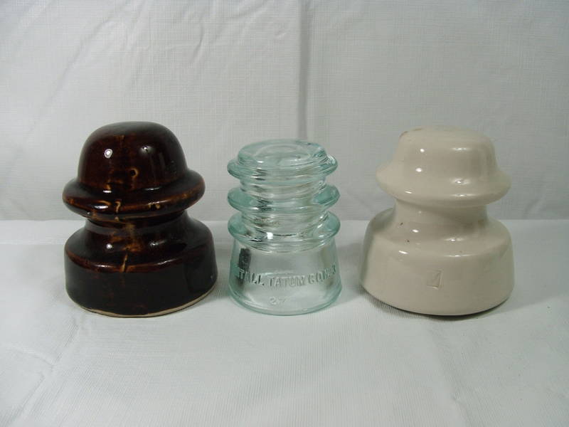 Here is a U-243 No Name (Pittsburg) signal in a mottled brown. Very near mint with a small chip on the underside inner skirt. Here is a CD 115 Front skirt- Whitall Tatum Co. No 3, 27 under embossing. Rear skirt Made in U.S.A. W/T in triangle. This one is in an ice blue in color and in great shape. Here is a U-297 V (Victor) on skirt, no other markings. This insulator is white and has two little dings on the crown. I'm asking $7.00 plus actual shipping. I accept Pay-Pal (Gift/Friends mode only) Personal checks and money orders. |