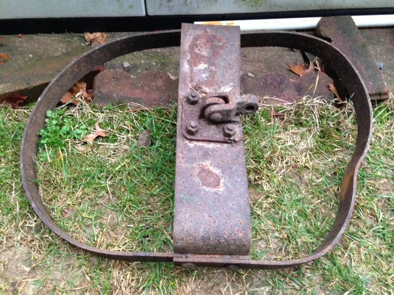 I forgot to post a picture of this corona ring I found last month when I walked the NS Port Road near Marietta PA. The PRR used these on their 138kv 25hz transmission system in place of lightning arrestors, and they are usually located on the the transmission poles right at the substation bringing the transmission line in. Another set is also placed about 8 poles away from the substation. This one is a bottom ring, with the conductor shoe going where that clevis is. I found others there but they were so mangled they weren't worth saving. |