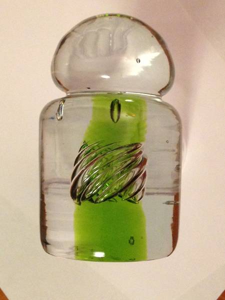 I picked this up today in a North Jersey antique store - I've seen this before as an entirely clear item but the green representing the pinhole is a neat touch.