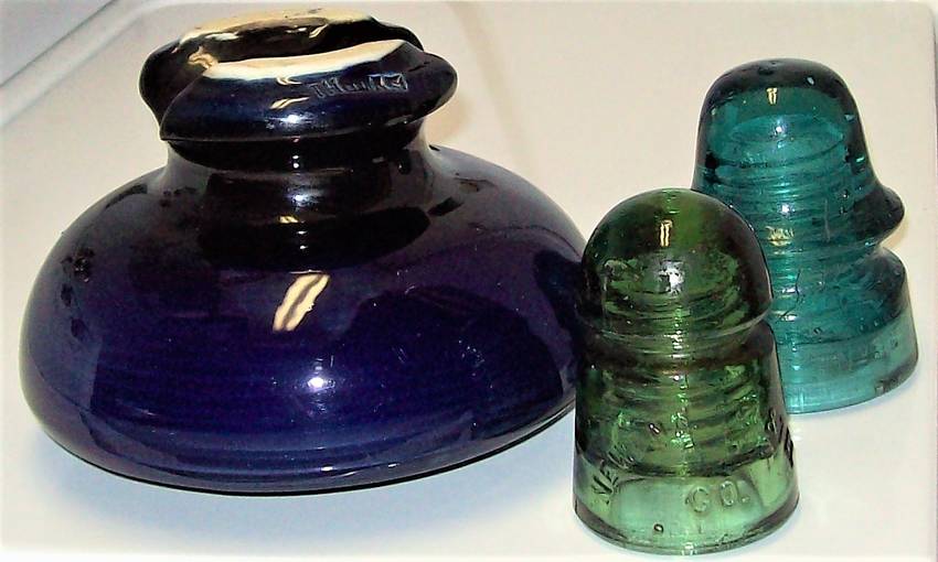 Drove a little further than usual this weekend, and found a "Junque" shop that I hadn't seen before. In addition to a large brass bighorn sheep for my brother, I found these three pin-types. A CD 104 NET&T in olivey green, a CD 162 Brookfield/No. 36; and a dead mint U-754 Thomas in cobalt blue with RFI treatment. I was told this one came from North Dakota. Inquiries welcome. |