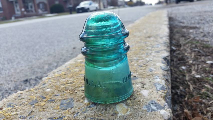 Picked this up on the way home from the Shrewsbury CBIC show (maybe you should have followed us, Frank!). EIN [120]. I couldn't tell how much amber was in it until I got it outside. The guy had a lot of interesting insulators but wasn't a collector... he gave me a discount for the "discoloration". |