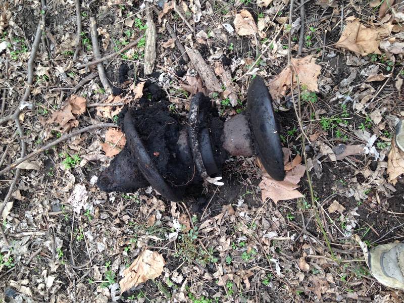 Here is a trio of Westinghouse bells I dug out of the ground. They were completely buried except for the very tops of the bells. Being buried for 30+ years has not been good for the metal hardware. They are completely rusted together and I haven't figured out how to get them apart yet without damaging them. |
