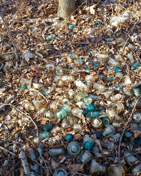 Here is a picture of a place I dug back when I was around 14 or 15. It's where I actually kind of really got into collecting insulators. Behind my 10 acre property, my aunt owns roughly 300 acres of farm and forest where I spent most of my days wandering as a kid. There was an old town by the name of Decker Hollow nestled in the woods by the creek but it had long since been abandoned. I sometimes found the odd bottle or rusty steel but one day I came across a hemi 19. After scrating around I must have found at least 600+ insulators with many different cds such as 154s, 102s, 109s, 104s etc. There were some real heartbreaks like a dome embossed 13 diamond 102 and some nice no name canadian 102s. Anyways I'm planning on going back after some time and clearing the rest of the dump out and I'll keep you posted. |