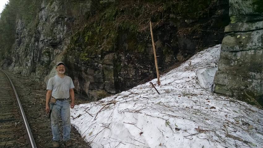 Jeff by the snow along the tracks