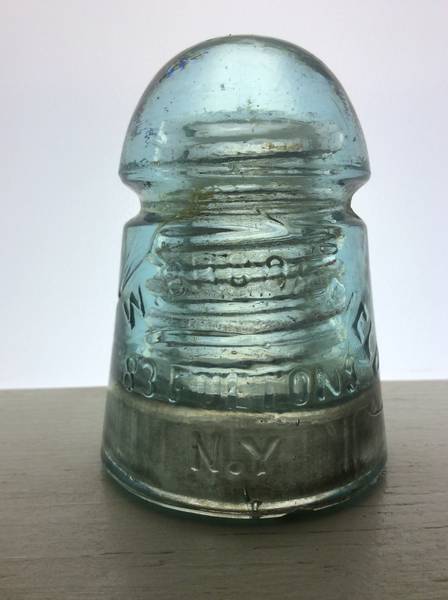 Here is another Washington antique store find. It is a CD 104 light aqua Brookfield. I find it interesting that the arc of the embossing starts higher than it ends.