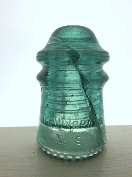 Every year during the fall, winter, and spring, the lake near my house lowers. This exposes many treasures (most of which are broken) that I find. I have found bottles, cans, marbles, bottle stoppers, insulator pieces and many other interesting things. This one was a really exiting find for me. I have found insulators that are more intact than this, but they are always by railroad tracks, and old lines. The most intact glass insulator that I had ever found in the lakebed before this one was a medium sized chunk. The two halves of this one sat a few feet apart. I was able to clean the insulator up and glue it. |