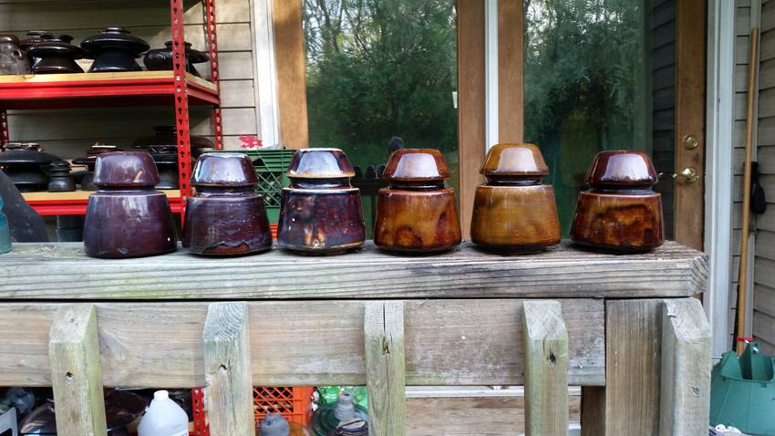 Got these from an auction last week. Finally got them reasonably clean, although not totally. Some nice glazes. All have unglazed pinholes, but not sure they are all Pittsburg High Voltage.