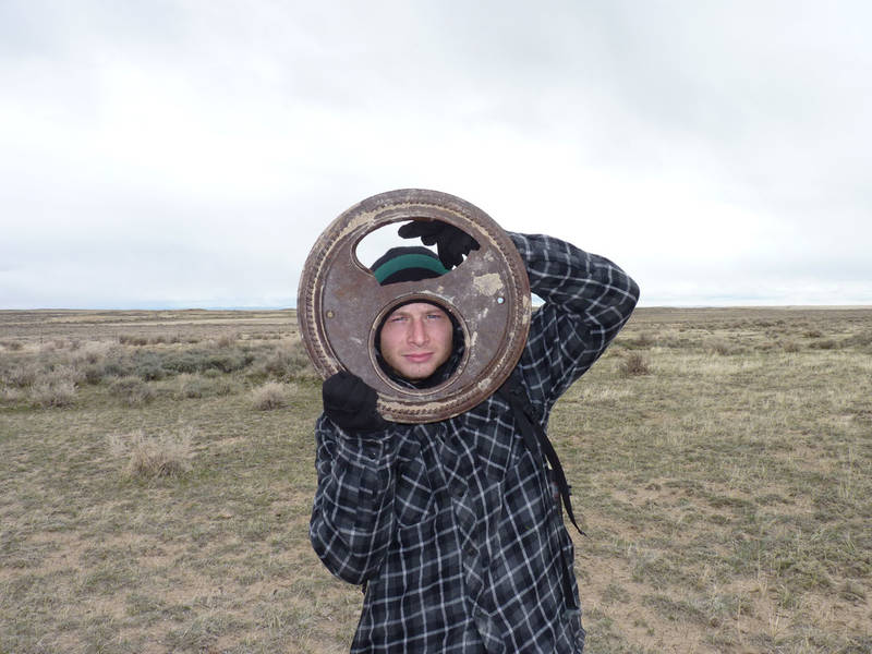 Sean having fun with yet another piece of the past. Perhaps part of an old stove?