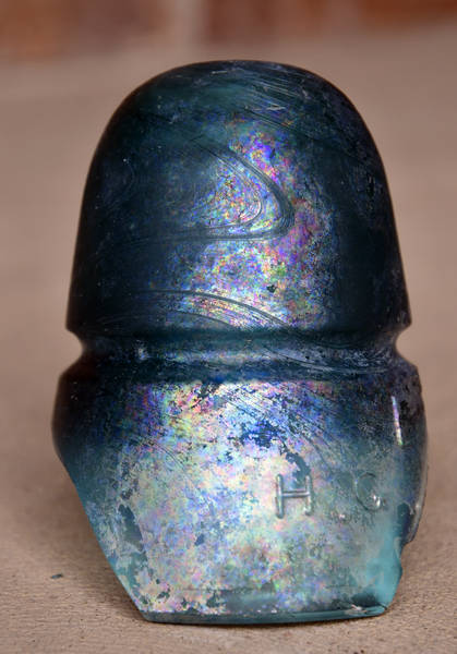 We found this patina covered teal H.G. beehive along a section near the present day railroad. Too bad it's not all there but still beautiful