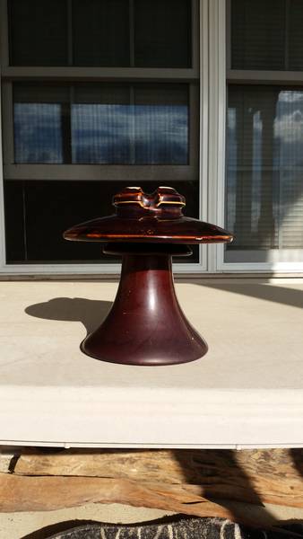 As we were leaving the house where I got the milk crate [id=500588694], we went into the garage to look for one final box of insulators and my eagle-eyed husband spotted this on their shelves in the dim light. It has an unglazed pinhole, so I'm declaring it PHV unless someone can prove otherwise :-) |