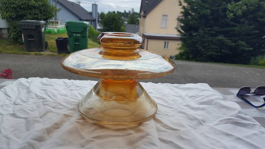 Another insulator from Doug Moody's Collection Jim and I are asking 130 for this one delivered to the National, Ben Kirsten's Battleground, WA, or Howard and Linda Bank's great show. This one has no dings just a pretty Carnival color, one of the best ones I have seen. |