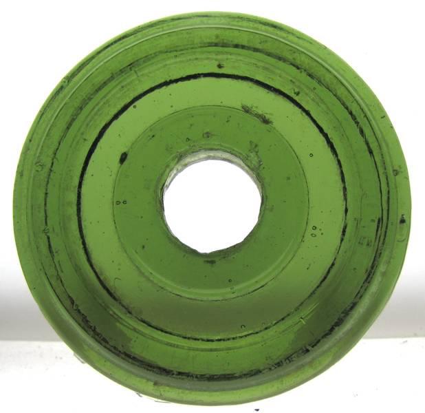 Here's a rare disc insulator measuring a mere 3 1/8" x 3/4" embossed ITALIA MIVA-ACQUI. Comes in a killer Yellow Olive Green (brighter than photo) which is very uncommon for Italian insulators. These were used in substation walls to support cables. VNM with one small peck, light tiny flaking around hole, 2-3 tiny fleabites and 1 tiny flake. First email gets this unusual and hard to find insulator for only $100 plus shipping. Thanks |