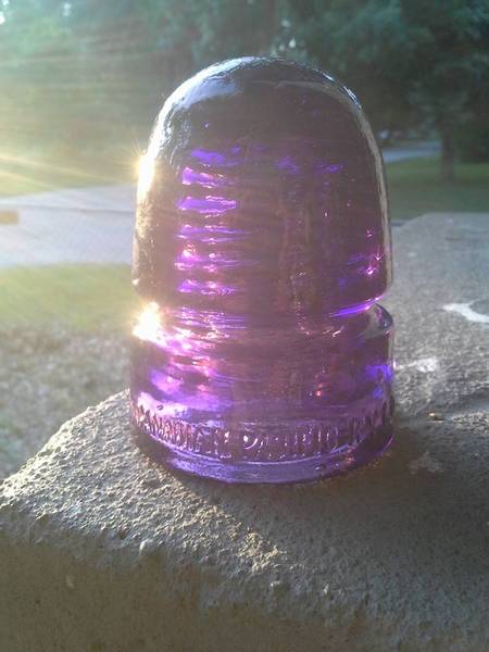 Here's a very nice CD 143 Canadian in Royal Purple. It the sun it almost has a cranberry look. I have several of these and this is the only one full of bubbles and sparkles. This one has the backward C in Pacific and is ein # 070. It has a hard to see base bruise with no glass missing and one tiny flea bite chip on the base. Displays perfect and set in my cabinet for years. One of the nicest you'll see. $60 plus shipping. |