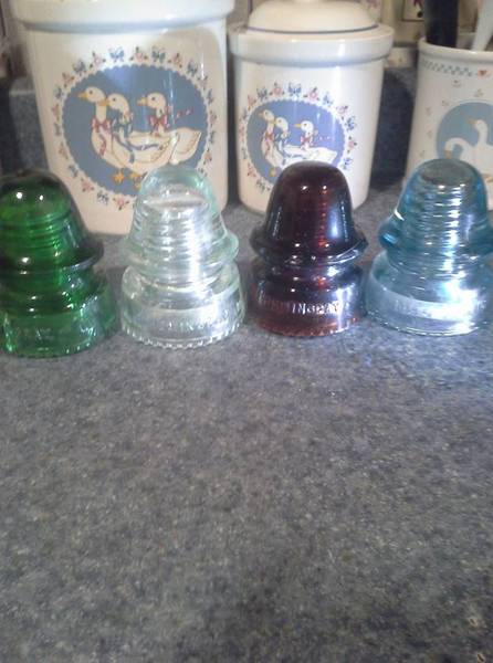 I dug out these 4 the other day. All 162's. The McLaughlin 19 is mint. The hemi 19 in ice blue clear has a pinky nail chip on the inner skirt. The orange amber hemi 19 has damage to 8 drips and the inner skirt is boogered up pretty good but the rest looks nice. Good color. The 7 up green hemi 19 has 4 drips damaged and the inner skirt on this one is also boogered up. It also has a one inch crack running up from the base through the hemingray embossing and a pinky nail chip on the upper wire groove, and several bb dings. I'm listing all 4 for $35 plus shipping which is about $13. So $48 for all 4 shipped. That's $12 each. Great starter set for kids or beginners. 7 up green 19 is SOLD. Others are $10 each except for the ice tint 19 which is $5. Amber 19 is sold. Thanks, Charles |